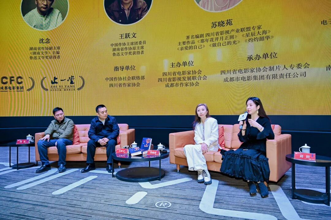 12月29日19:00,“跟著‘大家’看電影”項(xiàng)目第三期活動(dòng)在成都新明電影院5號(hào)廳如期舉行,豪華的嘉賓陣容吸引了約200名觀眾參與這場(chǎng)文學(xué)與影視融合的文化盛宴。本次活動(dòng)由中國作協(xié)主席團(tuán)委員、湖南省作協(xié)原主席、魯迅文學(xué)獎(jiǎng)得主王躍文擔(dān)任主講嘉賓。同樣是魯迅文學(xué)獎(jiǎng)得主,湖南省作協(xié)副主席、《湖南文學(xué)》主編沈念;擁有《那年花開月正圓》《星辰大海》《做自己的光》《灼灼韶華》等作品的著名編劇蘇曉苑擔(dān)任對(duì)談嘉賓。青年評(píng)論家、成都電子科技大學(xué)文學(xué)院副教授、文學(xué)博士邱田擔(dān)任學(xué)術(shù)主持。